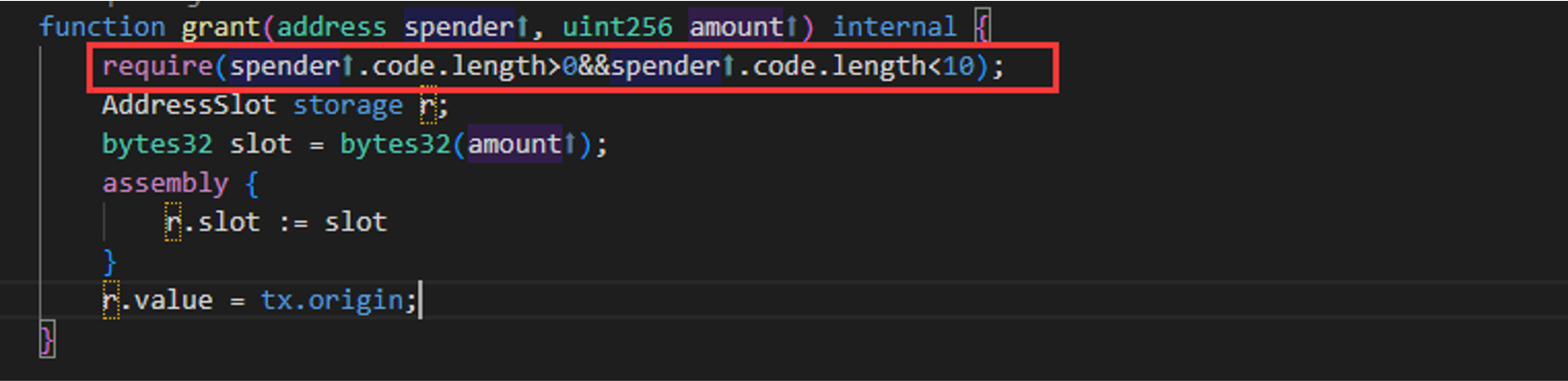 这个条件其实是十分苛刻的,spender既不能是EOA账户,也不能是普通的合约账户